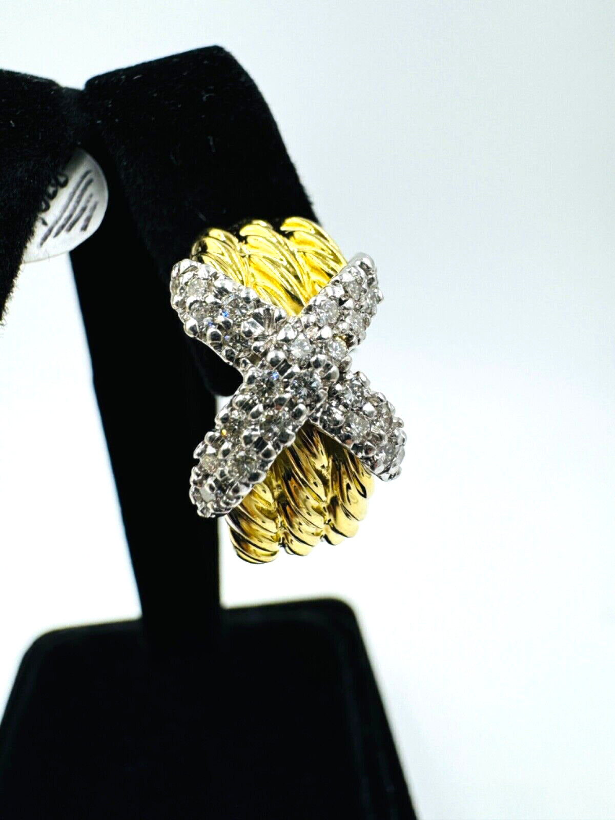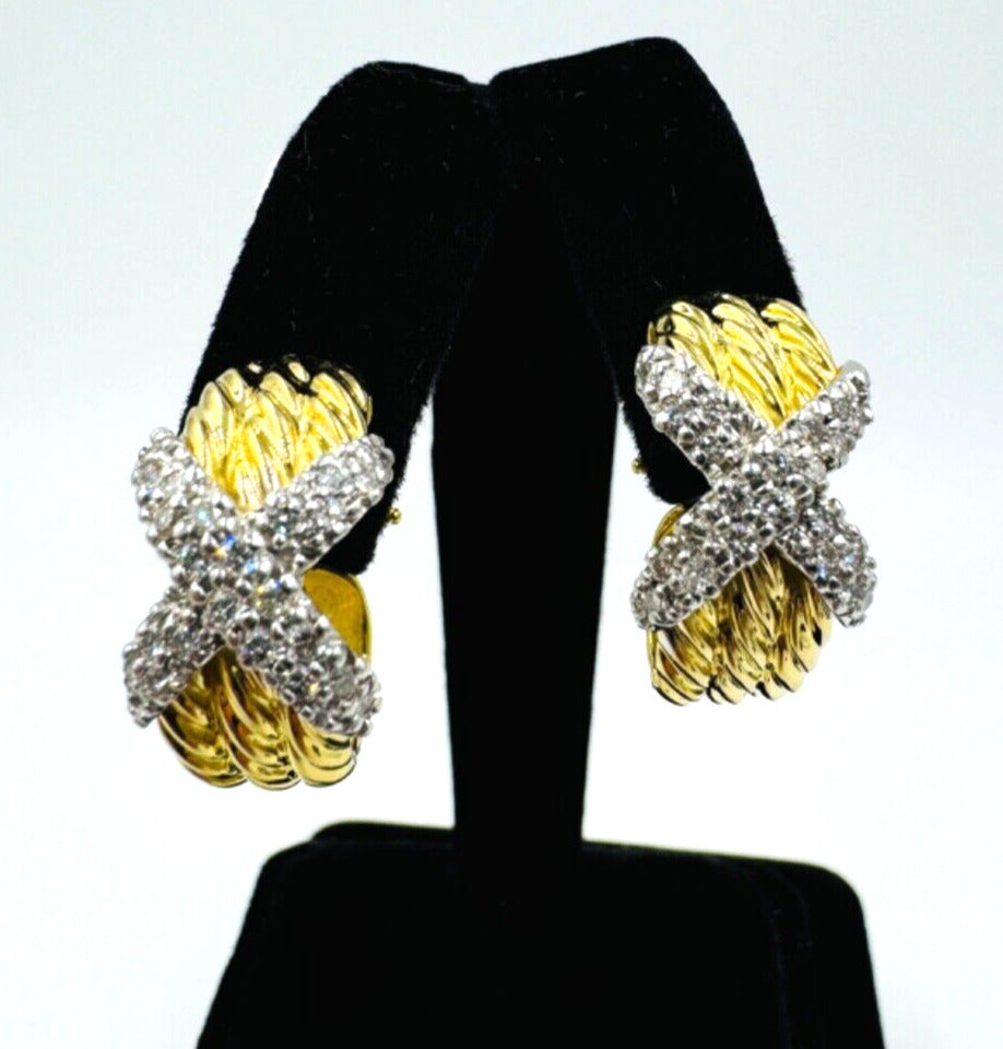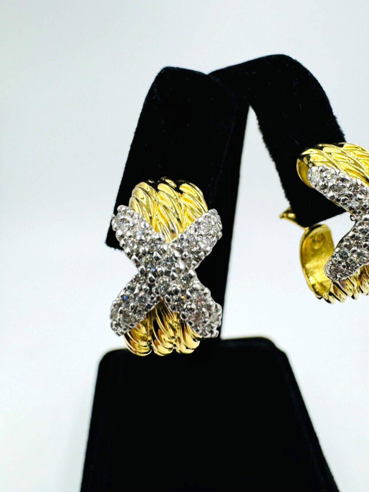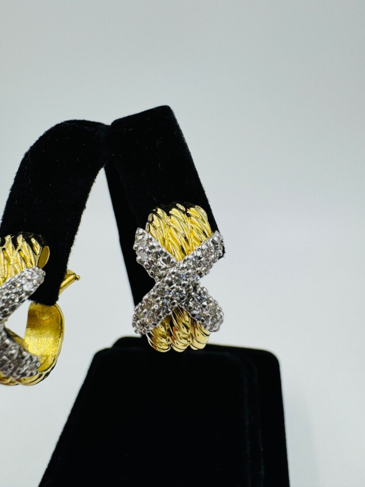David Yurman diamond 18k yellow gold X hoop earrings.