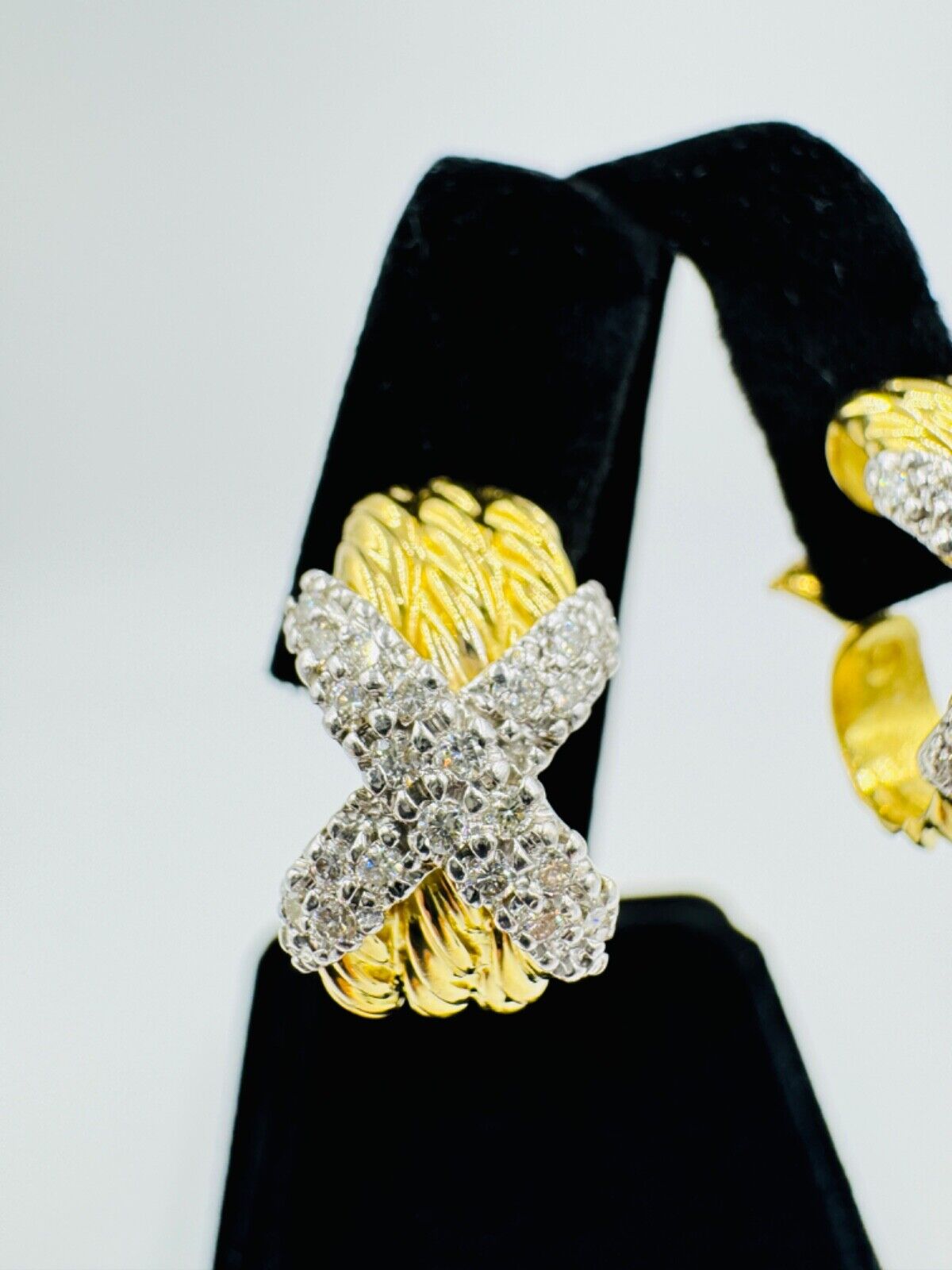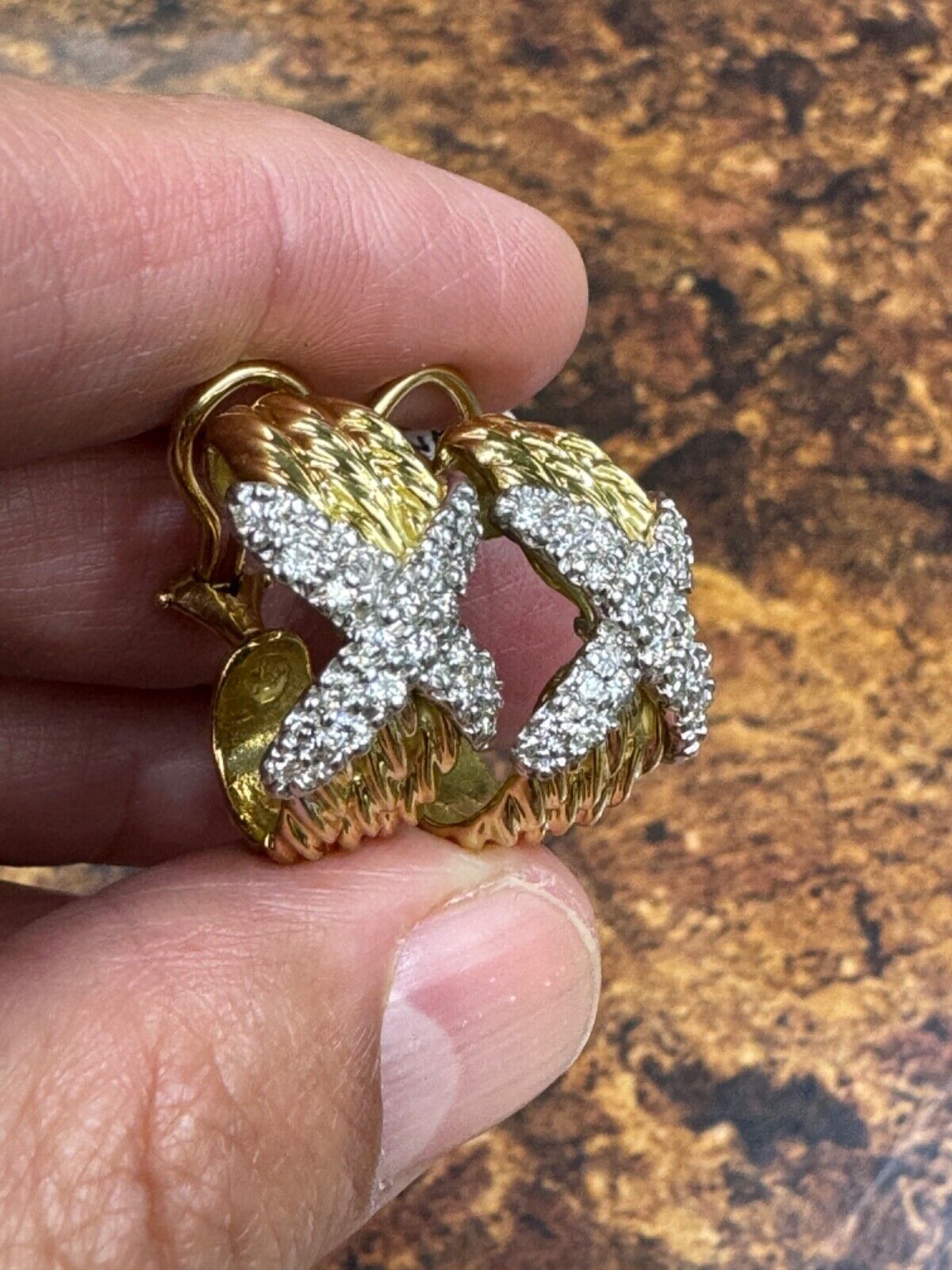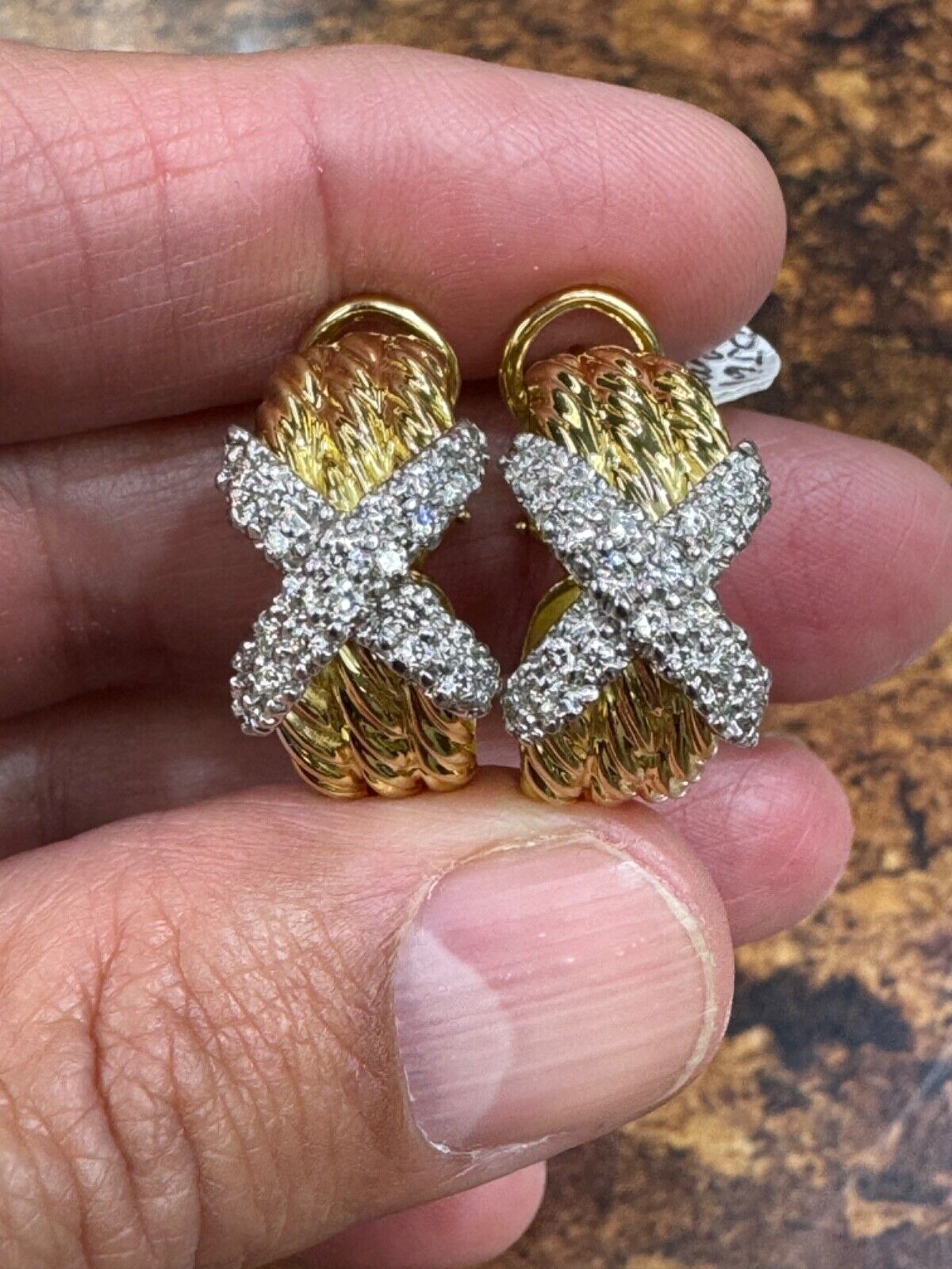 David Yurman diamond 18k yellow gold X hoop earrings.
