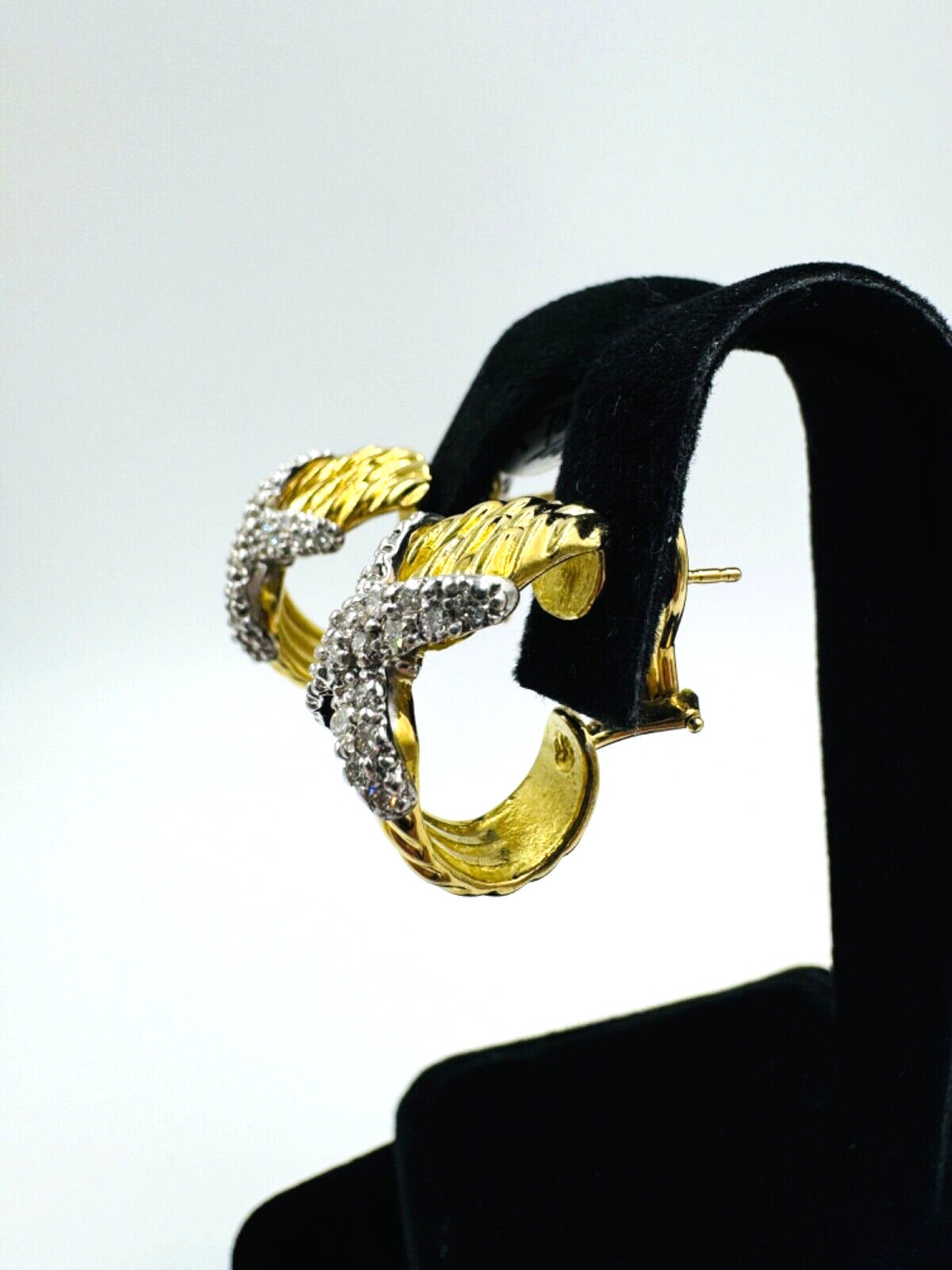 The intricate design of these hoop earrings reflects the attention to detail and craftsmanship that David Yurman is known for. The combination of the warm yellow gold and the sparkling diamonds creates a look that is both classic and contemporary, making these earrings versatile enough to be worn with any outfit.