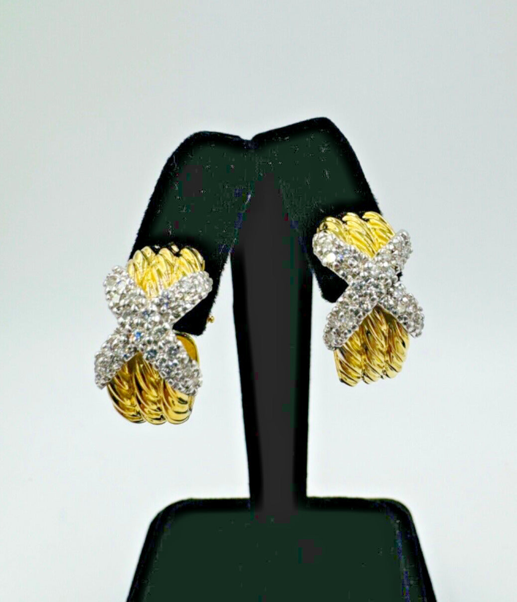 David Yurman Diamond 18k Yellow Gold X Hoop Earrings