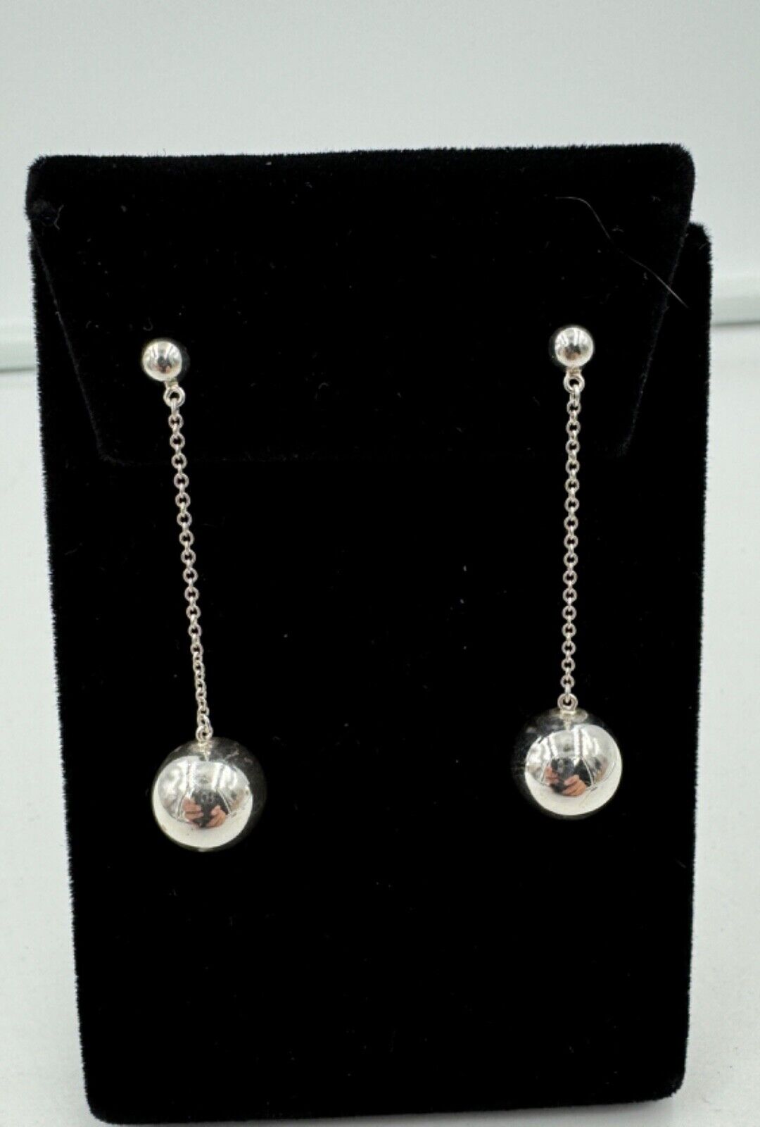 Tiffany & Co. Sterling Silver HardWear Ball Drop Dangle 10mm Earrings Box Pouch