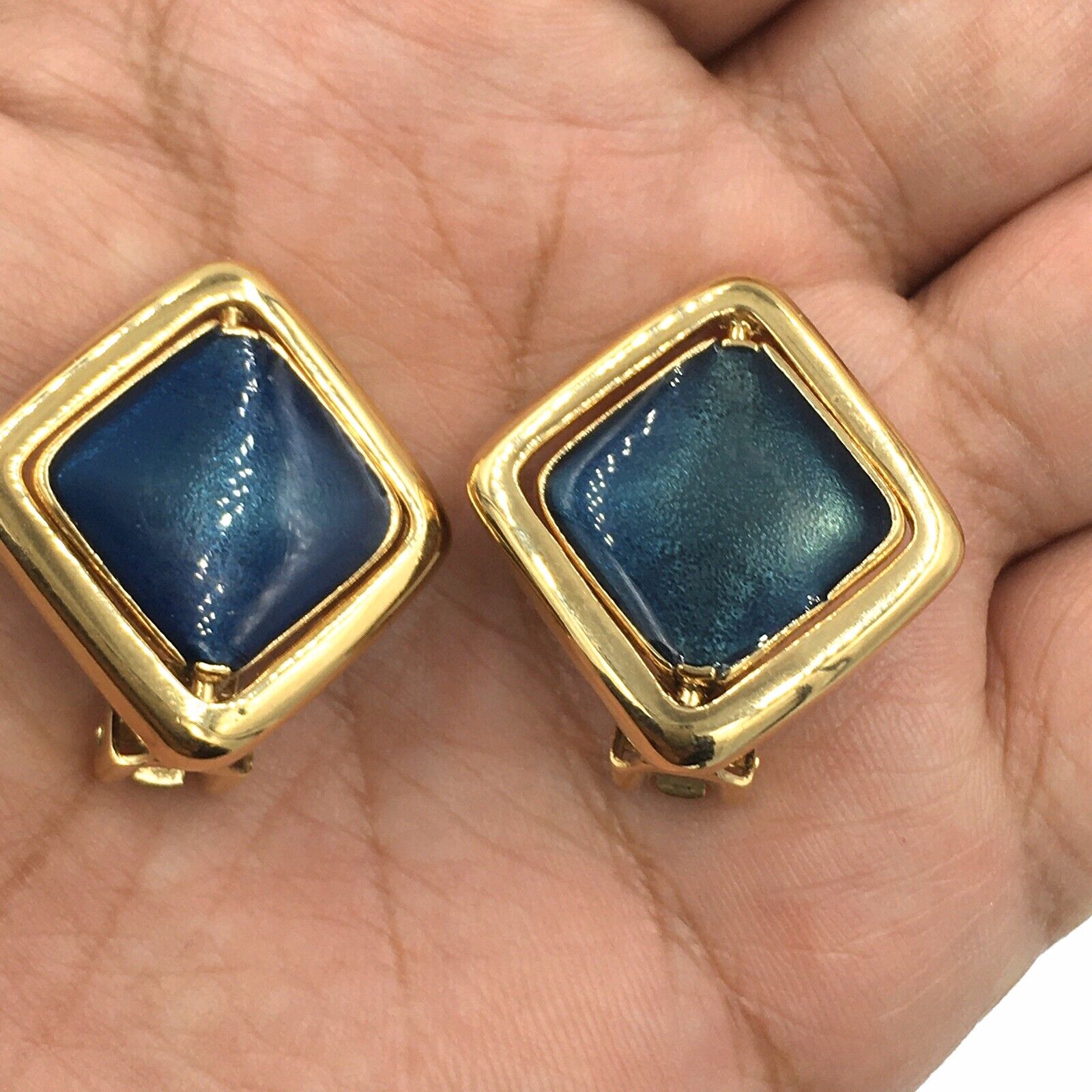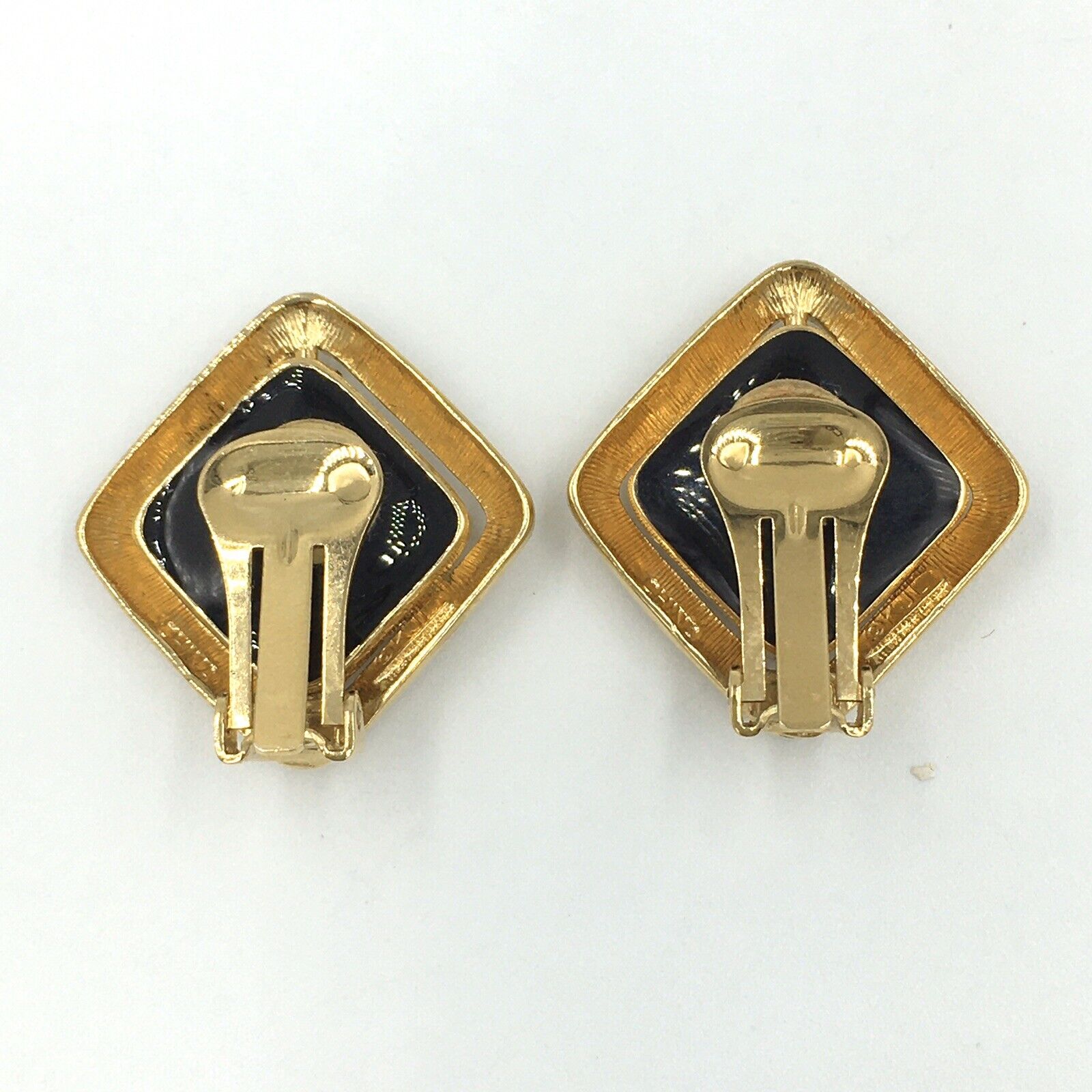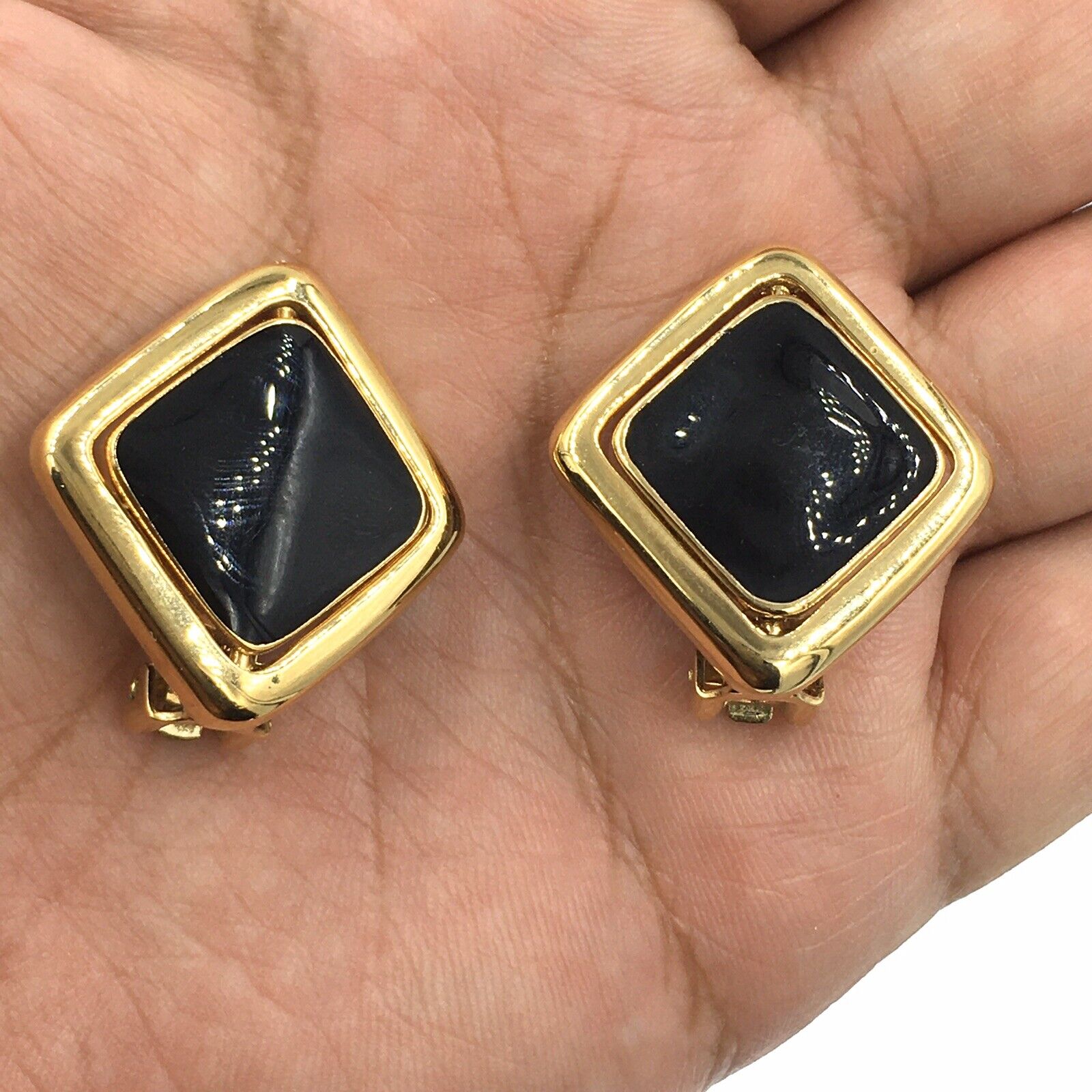 Vintage KJL Kenneth Jay Lane Reversible Black Blue Gold Tone Clip On Earrings. Beautiful design measuring about 1 1/8” Length and 1 1/8”width. They are in nice condition, light scratches. The clips are nice and tight with NO issues. Both Earrings are hallmarked KJL. Please Look at the pictures they are part of the description. We are a jewelry store all of our items are professionally inspected and tested, we guarantee all of our items to be as described.. I have many other hard to find items listed so please take a look, you never know what you might find. Thank you and Happy shopping! 01-22-20