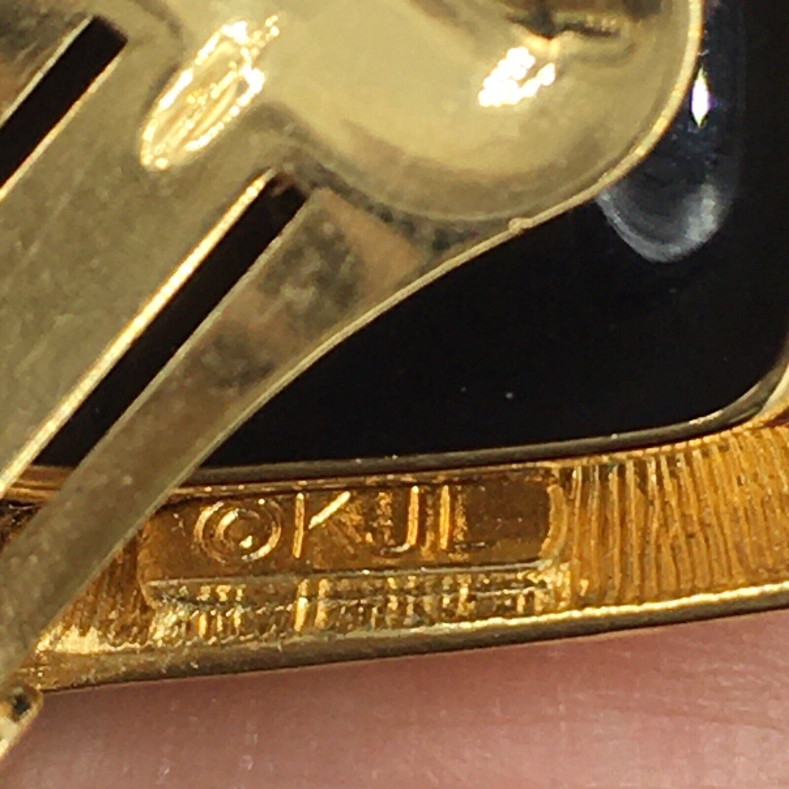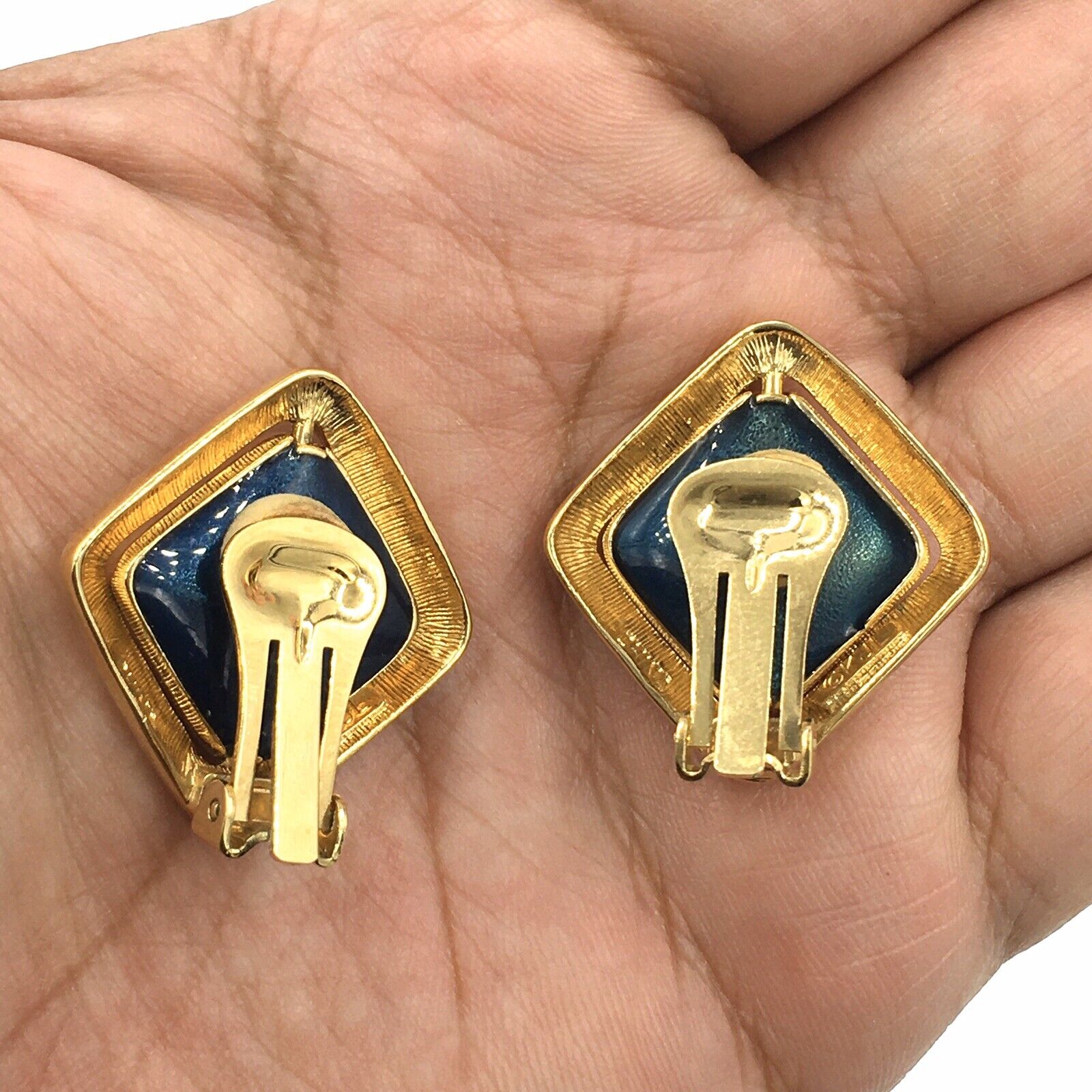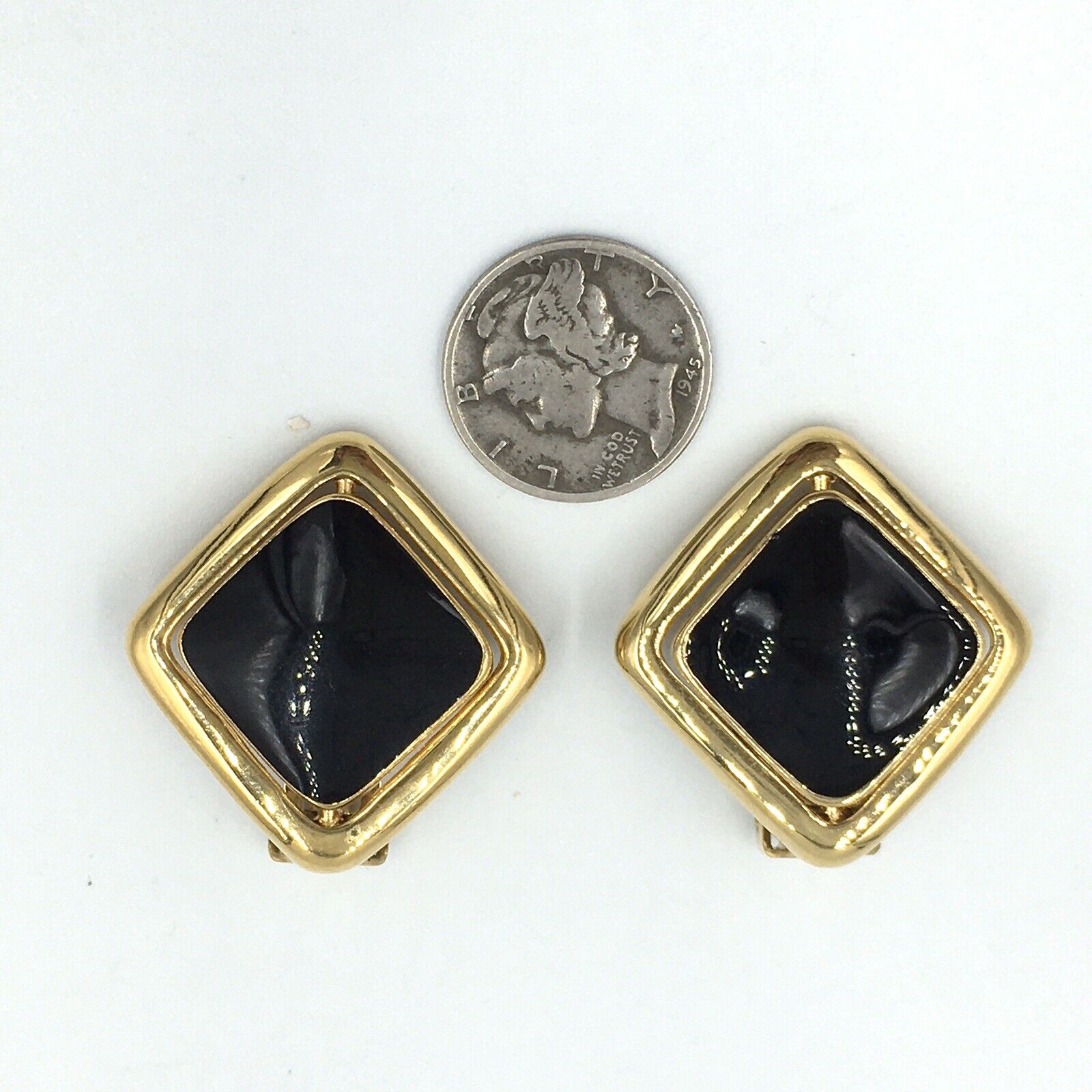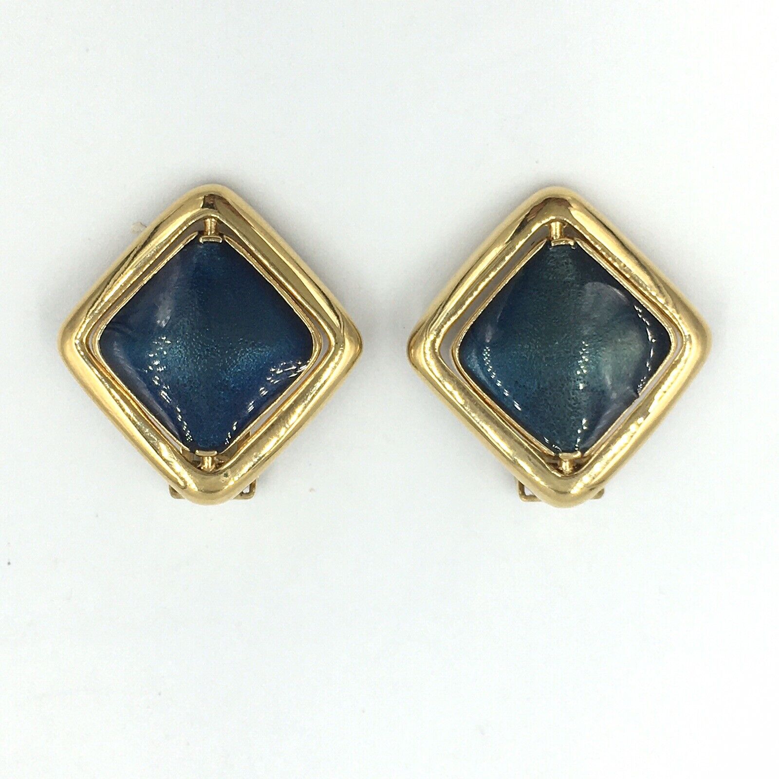 Vintage KJL Kenneth Jay Lane Reversible Black Blue Gold Tone Clip On Earrings. Beautiful design measuring about 1 1/8” Length and 1 1/8”width. They are in nice condition, light scratches. The clips are nice and tight with NO issues. Both Earrings are hallmarked KJL. Please Look at the pictures they are part of the description. We are a jewelry store all of our items are professionally inspected and tested, we guarantee all of our items to be as described.. I have many other hard to find items listed so please take a look, you never know what you might find. Thank you and Happy shopping! 01-22-20