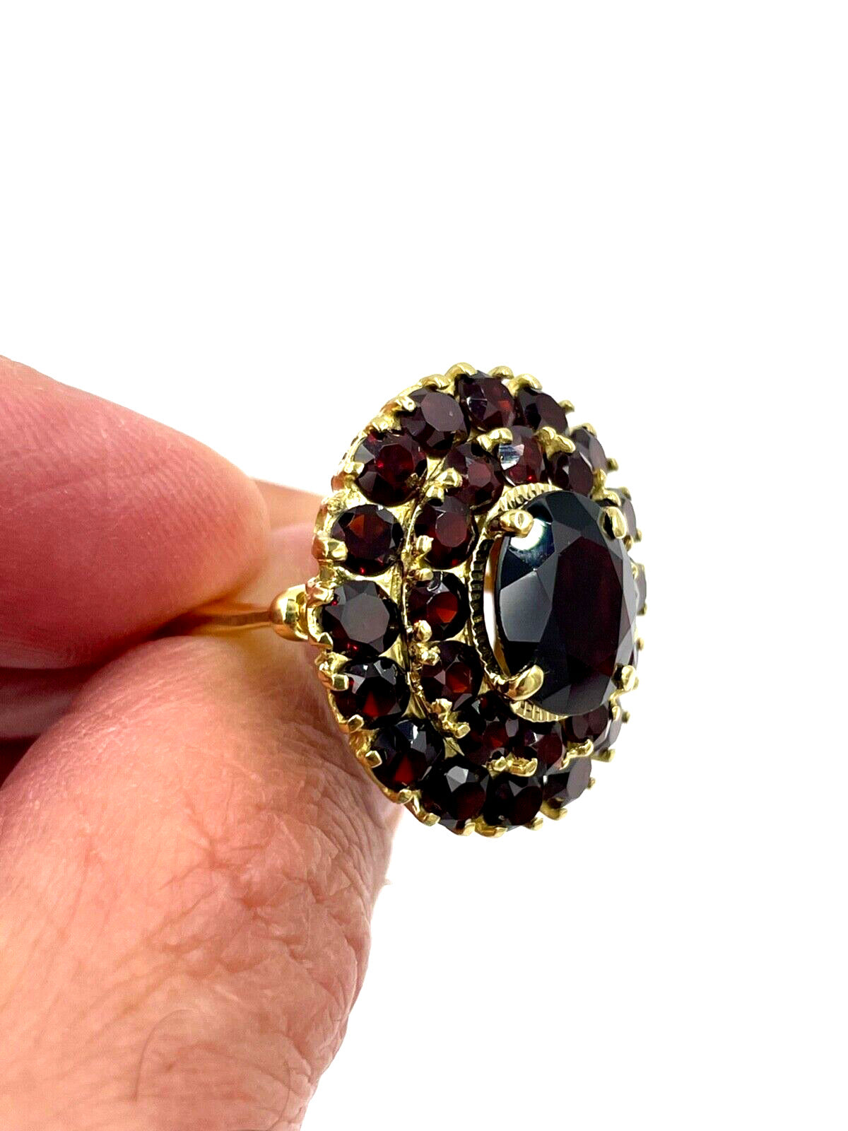 Estate 18k Yellow gold Garnet Cluster ring Mid Century Italy Cocktail Ring